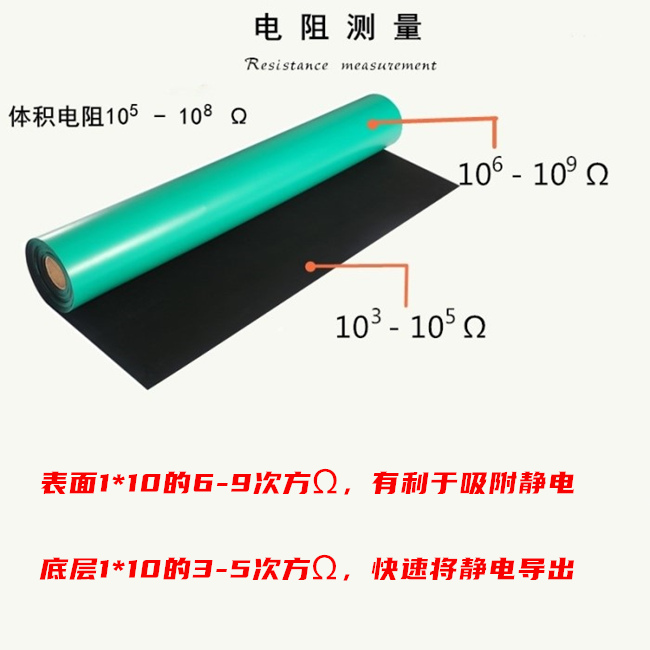 防靜電臺墊主要用抗(導(dǎo))靜電材料和耗散靜電材料合成橡膠等制做而成。表面層為約 0 5mm 厚的耗散靜電層,底層為約 1 5mm 厚的導(dǎo)電層。